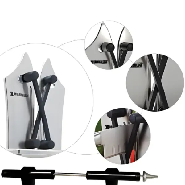✅️ صلابة استثنائية: مصمم ليدوم. مبرّد السكاكين مزوّد بأذرع مرنة فائقة الصلابة، مما يجعله أقوى وأطول عمرًا من الصلب والتيتانيوم.