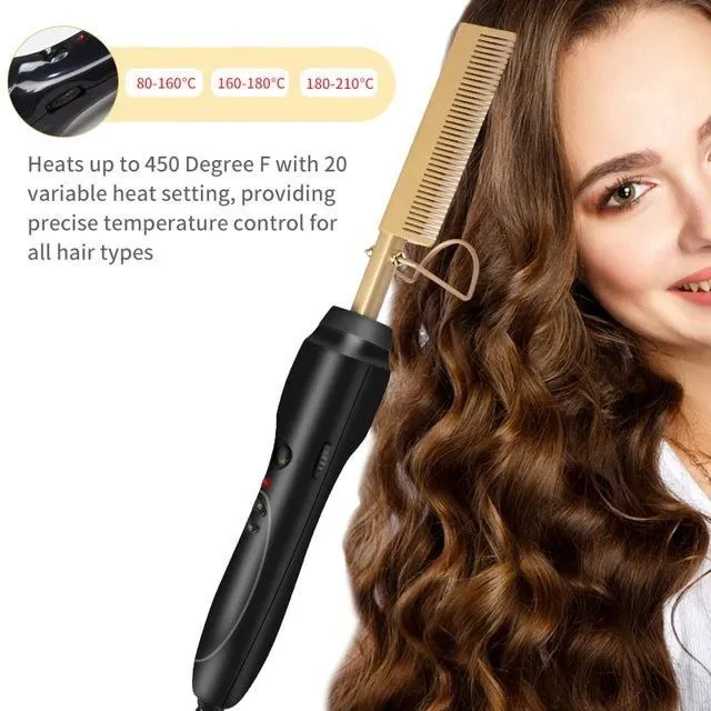 احصل على شعر أملس ورائع مع مشط الحرارة الذي يصل إلى 220 درجة في 30 ثانية. تصميم آمن مع مشط مدمج لحماية شعرك. ثلاث درجات حرارة تناسب كل أنواع الشعر. استخدام على الشعر الرطب والجاف. اطلب الآن لتجربة تصفيف ممتعة وآمنة!